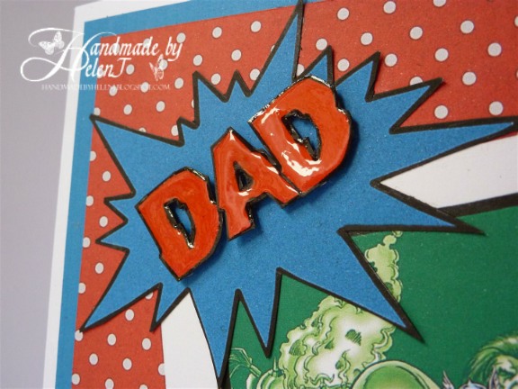 To add a bit of dimension I cut out the letters to spell Dad then used Anita's 3D Clear Gloss, and although it took me 3 attempts to get it right I felt the finished result was worth it. The eyelets were from the original kit which came with my Crop-a-dile and proved to be a lucky find as they were a perfect match.